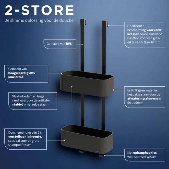 - Nach oben und unten: die Höhe der Duschkörbe lässt sich ganz einfach anpassen, perfekt für große Flaschen (max. 5 cm verstellbar)