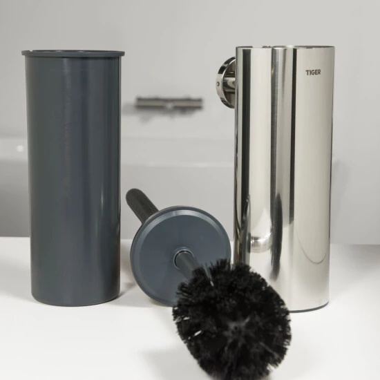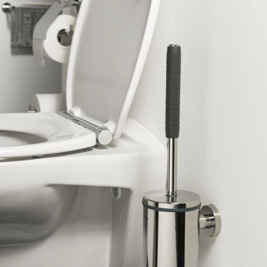 Komfort WC-Bürstengarnitur mit extra langem Stiel. Ermöglicht durch die komfortable Greifhöhe ein einfaches reinigen ohne viel bücken. Zusätzlich bietet der Anti-Slip-Griffüberzug einen sicheren Halt in der Hand. Material: Edelstahl poliert. Die Ausstattungsserie Boston vereint robustes, elegantes Design mit Funktionalität und hochwertiger Verarbeitung. Die einfache, straffe Formgebung bringt Ruhe und Eleganz in jedes Bad.