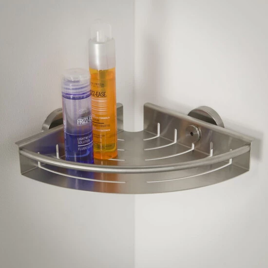 Stilvoller Eck-Duschkorb der Ausstattungsserie Boston in der Ausführung Edelstahl gebürstet. Die praktische Ablage bietet Platz für Duschgel, Shampoo und Co. Die Artikel lassen sich einfach mittels der mitgelieferten Edelstahl-Schrauben und Dübel an der Wand befestigen. Alternativ können Sie die Accessoires (mit Ausnahme des Handtuchhalters und des Wannengriffs) auch ohne zu Bohren mit dem separat erhältlichen Tigerfix-Befestigungsset Nr. 1 kleben. Die Ausstattungsserie Boston vereint robustes, elegantes Design mit Funktionalität und hochwertiger Verarbeitung. Die einfache, straffe Formgebung bringt Ruhe und Eleganz in jedes Bad.