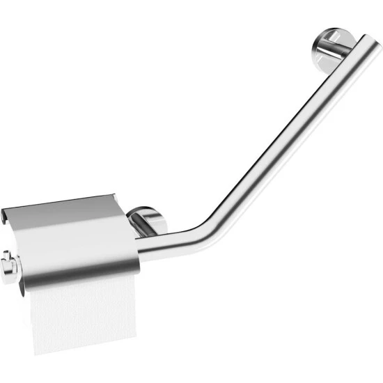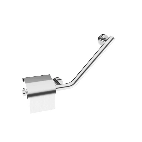 Der Haltegriff mit integriertem Toilettenpapierhalter vereint Design und Funktion: er passt sich formschön in das Bad ein und ermöglicht ein komfortables und sicheres Aufstehen von der Toilette.