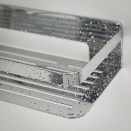 Die Ablage ist aus hochwertigen Materialien gefertigt und für den Einsatz in feuchten Umgebungen geeignet. Der hohe Rand rings um die Ablagefläche sorgt dafür, dass die Pflegeprodukte nicht verrutschen oder herunterfallen. Der Duschkorb ist einfach anzubringen und zu säubern.