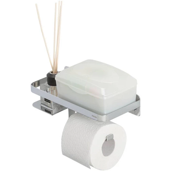 Mit diesem einzigartigen Tiger Caddy Toilettenpapierhalter mit Ablage haben Sie es gemütlich. Die All-in-1-Badezimmerlösung bietet Platz für Duftsticks, Ihr Smartphone, Feuchttücher oder Damenbinden. Dieser Duschkorb ist der Houdini Magier unter den Badaccessoires, doch mit diesem neuen Caddy ist ein ordentliches Badezimmer durchaus keine Illusion. Verleihen Sie Ihrem Badezimmer eine moderne Note mit dieser Chromausführung.