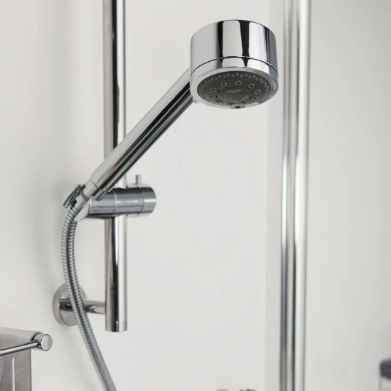 Darüber hinaus verfügt jede Chrom-Handbrause über eine gleichmäßige Strahlverteilung, sodass Sie sich beim Duschen nie kalt fühlen. Der Duschkopf verfügt zudem über eine Anti-Kalk-Beschichtung, mit der sich der Kalk leicht vom Kopf entfernen lässt.