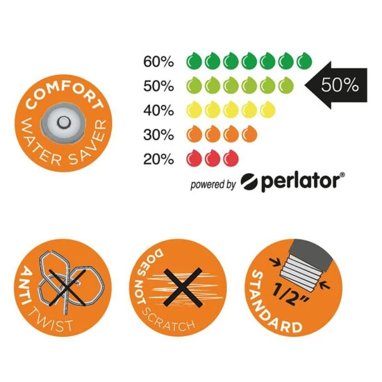Aber das ist nicht alles. Sie sparen bis zu 50 % des Wasserverbrauchs. Und auf den Komfort beim Duschen verzichten zu müssen. Wenn Sie einen Brauseschlauch mit dem gewissen Extra suchen, ist dies der richtige für Sie!