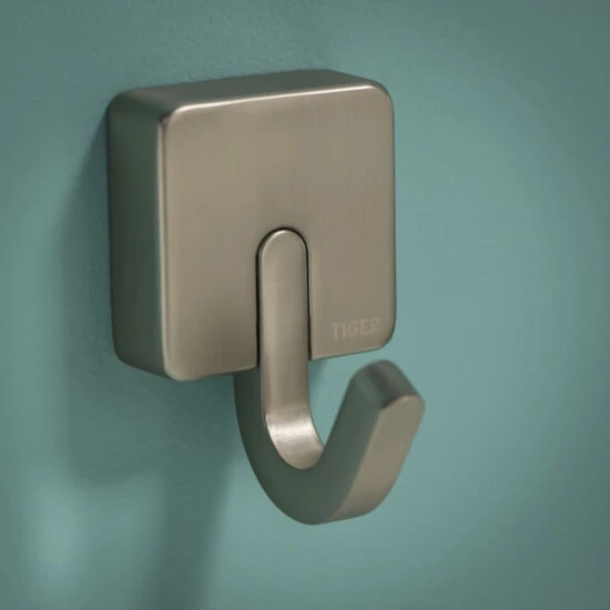 Der Tiger Impuls Haken besitzt eine , gebürstete, rostfreie Stahlbeschichtung und ist mit den beinhalteten Monturmitteln, an unterschiedlichen Oberflächen montierbar. Der Haken ist für Produkte bist zu einem Gewicht von 5 kg geeignet.