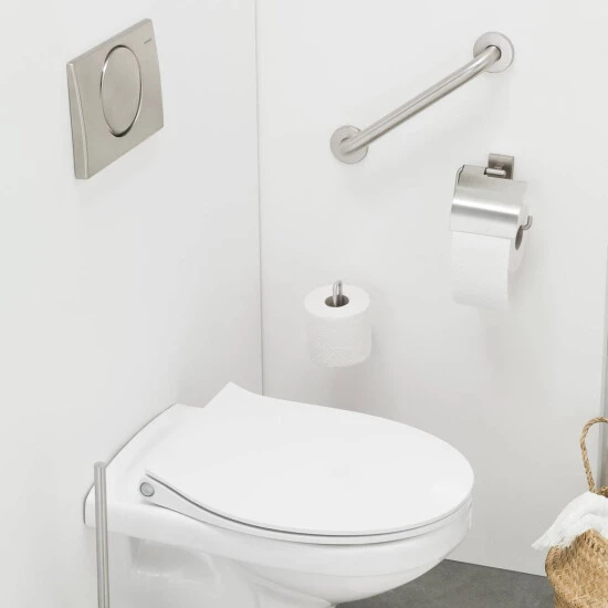 Die Serie Libra bietet Sicherheit und funktionales Design. Der Haltegriff mit einer Länge von 30 cm ist aus Edelstahl gefertigt und in der Oberfläche gebürstet ausgeführt. Mit einem Durchmesser von 25 mm bietet er sicheren Halt. Der Griff kann dabei -je nach Einsatz- horizontal, vertikal oder diagonal angebracht werden. Er besitzt dabei eine Belastbarkeit bis 150 kg. Die Montage erfolgt mit Hilfe der mitgelieferten Dübeln und Schrauben, die von der Wandhalterung verdeckt werden und somit nicht sichtbar sind.