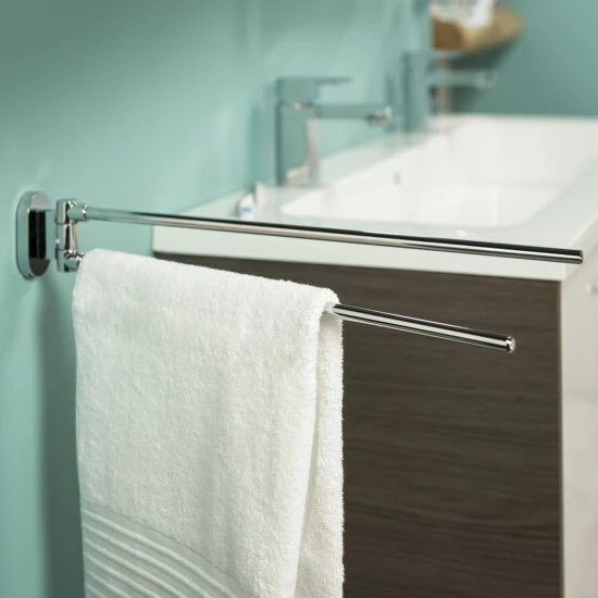 Der zweiarmige Handtuchhalter der Serie Lucca bietet mit seinen beiden Haltestangen Platz für zwei Handtücher. Mit diesem Handtuchhalter nutzen Sie auf optimale Weise den Platz um Ihren Waschtisch herum. Lucca lässt klassische Formen in neuem Glanz erscheinen. Diese Serie wird Ihnen daher wohl genauso gut gefallen wie die historische Stadt selbst. Das Design der Serie Lucca passt sich in jedes Bad stilvoll ein.