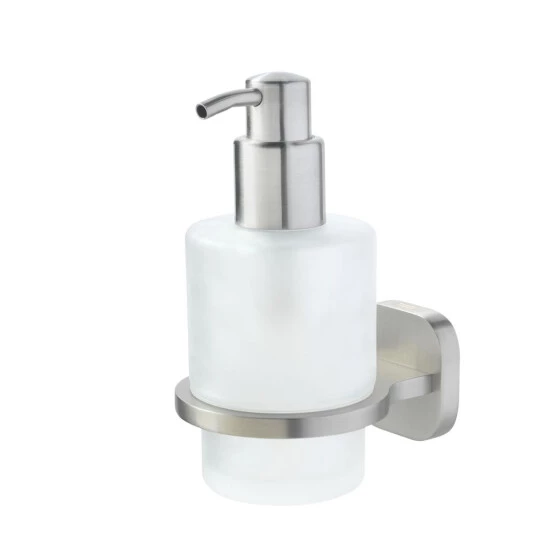 Der aus gebürstetem Edelstahl gefertigte Seifenspender der Serie Ramos verbindet Design und Funktion in perfekter Weise. Der Glaseinsatz kann zum Reinigen und Nachfüllen einfach entfernt werden. Die Artikel lassen sich einfach mittels der mitgelieferten Edelstahl-Schrauben und Dübel an der Wand befestigen. Alternativ können Sie die Accessoires (mit Ausnahme des Handtuchhalters) auch ohne zu Bohren mit dem separat erhältlichen Tigerfix-Befestigungsset Nr. 1 kleben. Die Accessoires der Serie Ramos sind durch eine moderne, rechteckige Formgebung mit abgerundeten Ecken charakterisiert und geben der Badgestaltung den letzten Schliff. Alle Artikel sind in der Oberfläche Chrom oder Edelstahl gebürstet erhältlich.