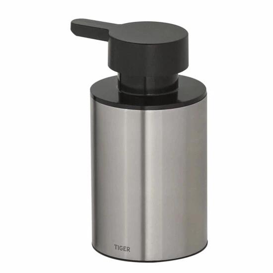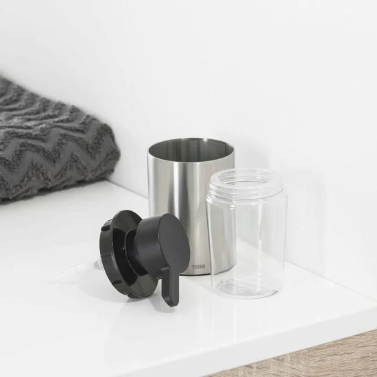 Der freistehende Tiger Seifenspender Colar aus gebürstetem Edelstahl ist eine praktische und dekorative Ergänzung zu Ihrem Badezimmer oder Gäste-WC. Der Behälter für die Flüssigseife ist abnehmbar und kann nachgefüllt werden.