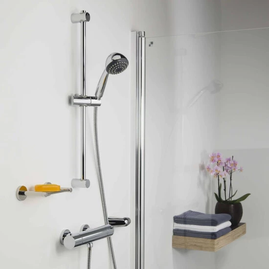 - 1 x Duschstange mit variabel einstellbaren Wandbefestigungen