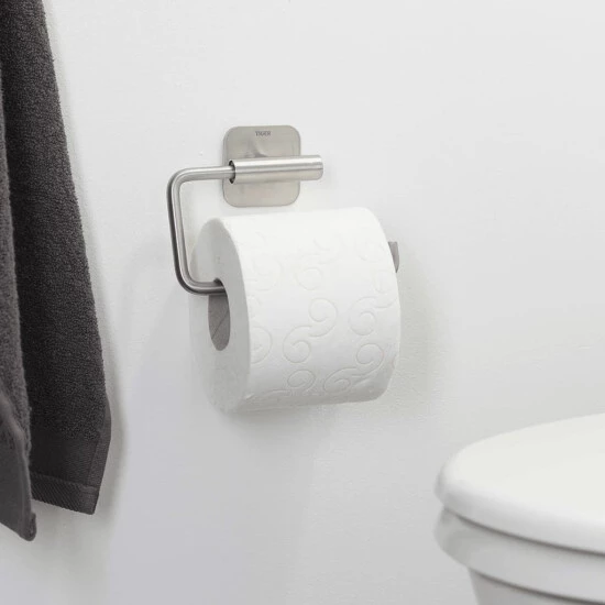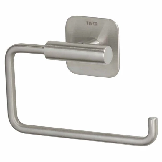 Der Tiger Toilettenpapierhalter Colar ist aus gebürstetem Edelstahl gefertigt und für die Wandmontage ohne Bohren geeignet. Dieses Bad- und WC-Accessoire wird mit extrem starkem, doppelseitigem Klebeband geliefert und kann daher sehr einfach auf jeder glatten, tragfähigen Oberfläche wie Glas, Fliesen oder Holz befestigt werden, ohne Bohren zu müssen.