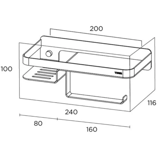 Tiger Toilettenpapierhalter mit Ablage, Edelstahl gebürstet, BxHxT: 24 x 10 x 11,6 cm