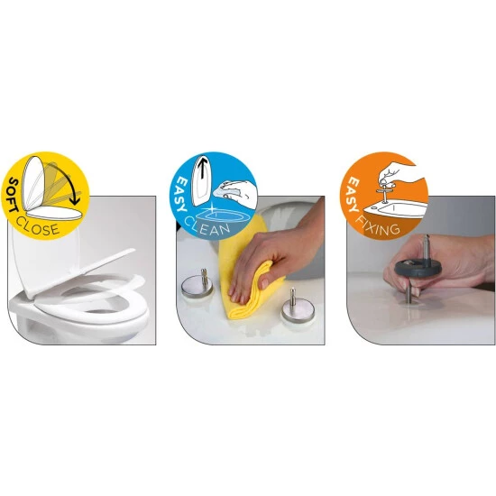 - Die speziellen Soft-Close-Scharniere ermöglichen ein sanftes Absenken des WC-Sitzes. Er ist äußerst leise und sicher für Kinderhände. Durch die Puffer werden Schäden an der Keramikoberfläche des WC-Beckens vermieden
