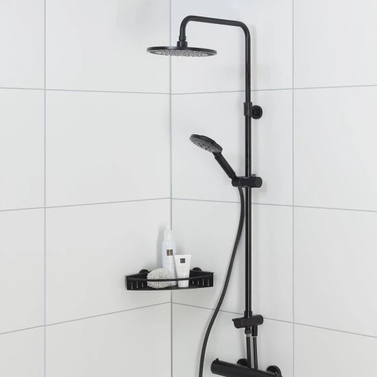 Auslauf 🎁 Tiger Tyne Duschsäule Mit Regendusche, Edelstahl, Farbe: Schwarz, Höhenverstellbar, Duschset Mit Flexibler Halterung Zur Nutzung Vorhandener Bohrlöcher, Inkl. Zwei Schwarzen Brauseschläuchen 💯