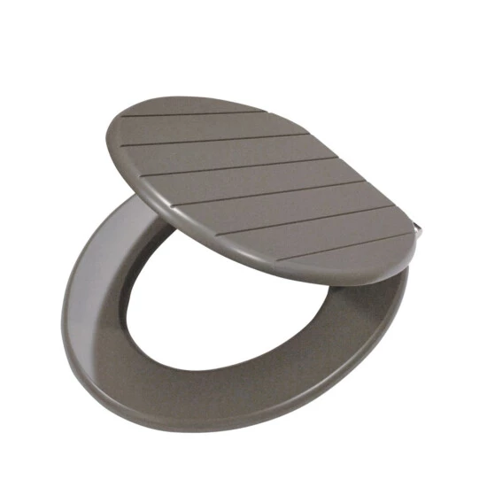 Das an ein Strandhaus erinnernde Design des WC-Sitzes Baya bringt Urlaubsstimmung in Ihr Bad. Die eingelassenen Streifen wirken in Kombination mit der Farbe Lavagrau natürlich und edel. Die Absenkautomatik sorgt für ein langsames und ruhiges Schließen des Deckels und der Brille. Der WC-Sitz passt auf alle handelsüblichen WC-Becken, der Abstand der Befestigungen kann zwischen 105 und 200 mm (jeweils Außenkante) eingestellt werden. Das Montagematerial ist im Lieferumfang enthalten.